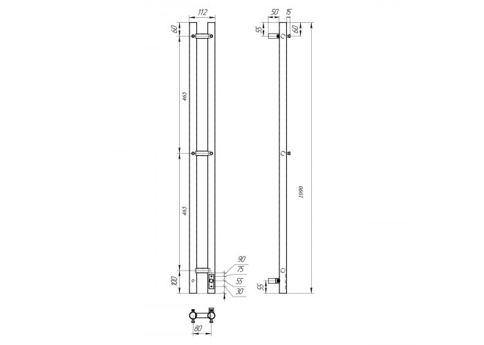 Полотенцесушитель электрический APEXTERMO Luna 1100x80 с крючками, черный матовый LN10111BM