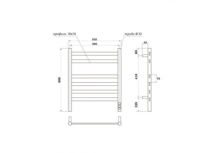 Полотенцесушитель электрический APEXTERMO Sfera 600x500, черный матовый SF00165BM