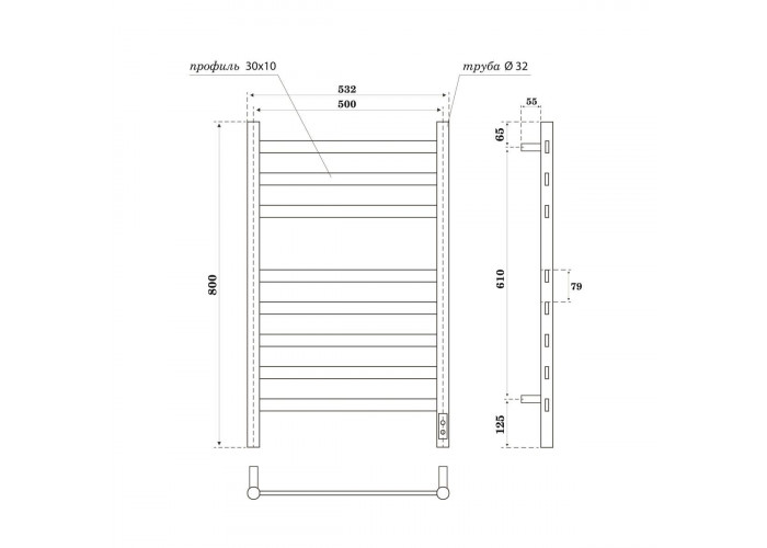 Полотенцесушитель электрический APEXTERMO Sfera 800x500, черный матовый SF00185BM