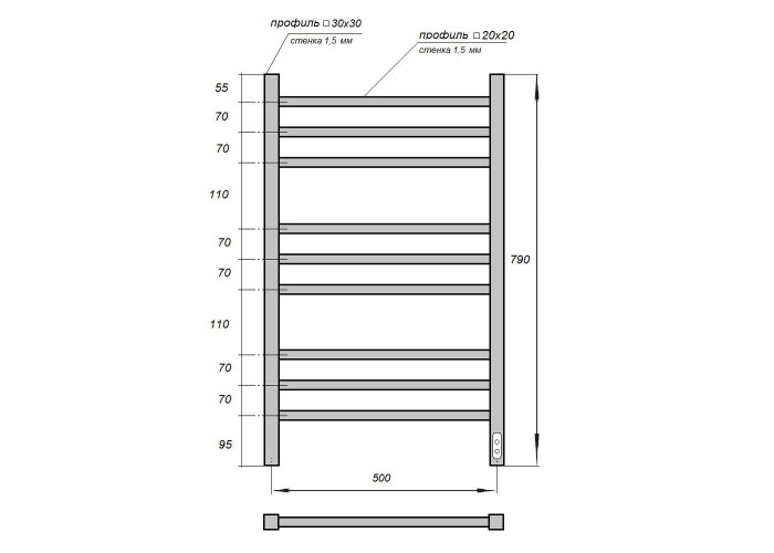 Полотенцесушитель электрический APEXTERMO Atlas 800x500, черный матовый AT00185BM