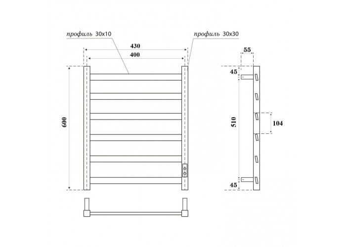 Полотенцесушитель электрический APEXTERMO Galaxy 600x400, черный матовый GL00164BM