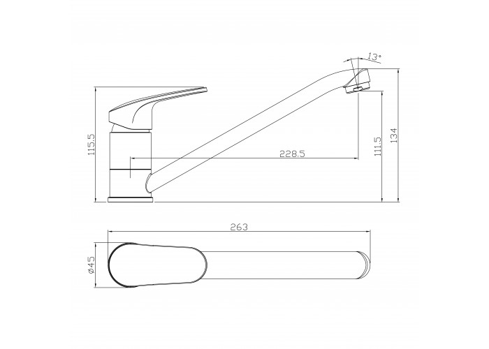 Смеситель для кухни с поворотным изливом, высота излива 11 см, длина 23 см RS45-21
