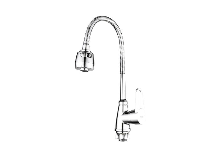 Смеситель для кух. с гиб. изливом, кер. картридж ø40, гайка, пластиковая ручка, подводки 55 KAG-4004